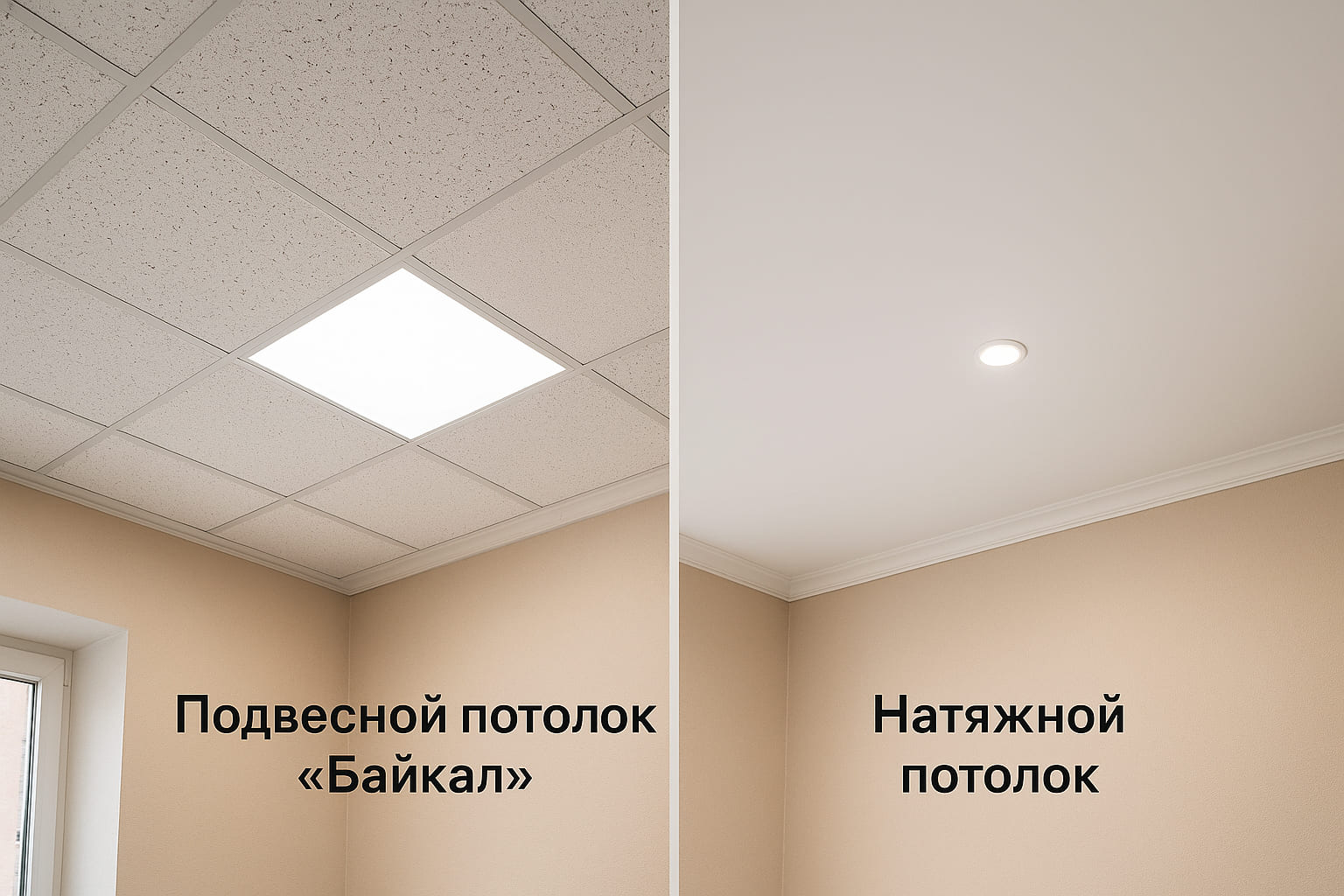 Подвесные потолки с плитой Байкал и натяжные потолки: особенности и отличия